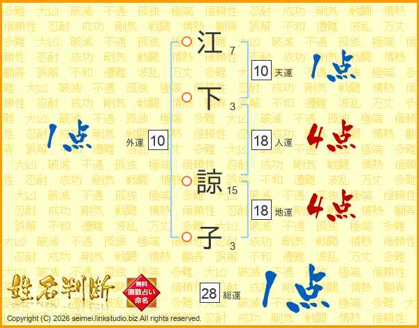 江下諒子さんの人運は18画の4点!