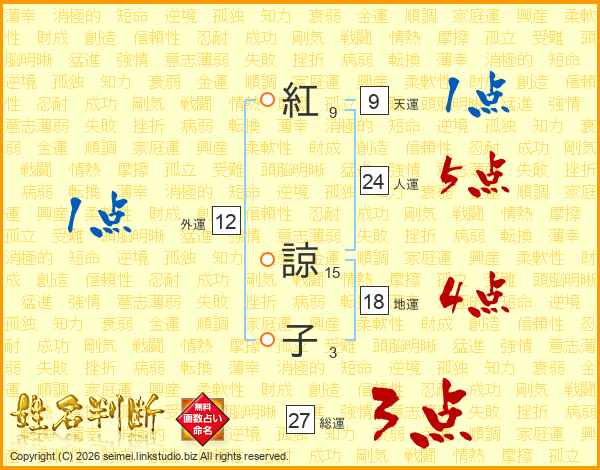紅諒子さんの総運は27画の3点!