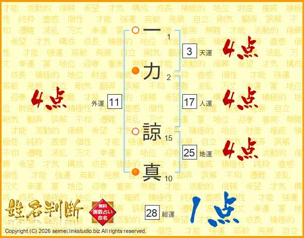 一力諒真さんの総運は28画の1点!