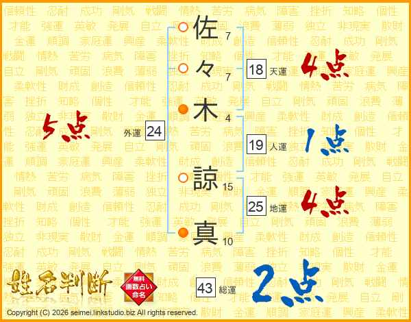 佐々木諒真さんの地運は25画の4点!