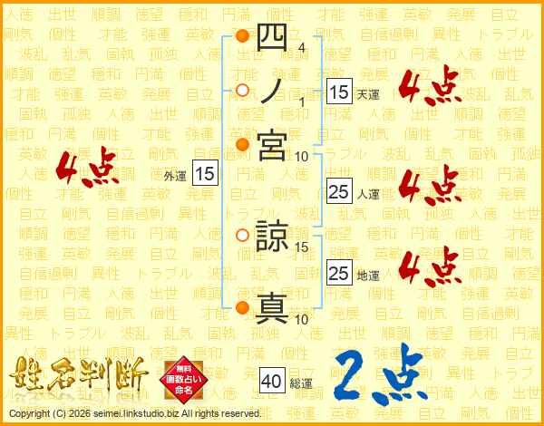 四ノ宮諒真さんの総運は40画の2点!
