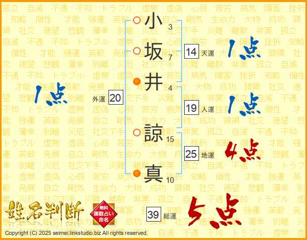小坂井諒真さんの総運は39画の5点!
