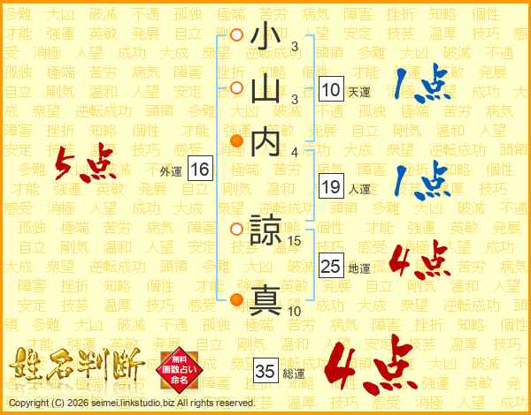 小山内諒真さんの総運は35画の4点!