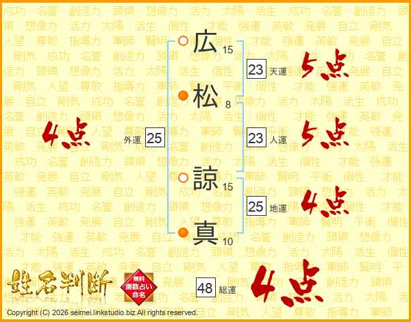 広松諒真さんの総運は48画の4点!