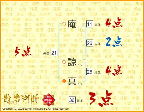 庵諒真さんの人運は26画の2点!