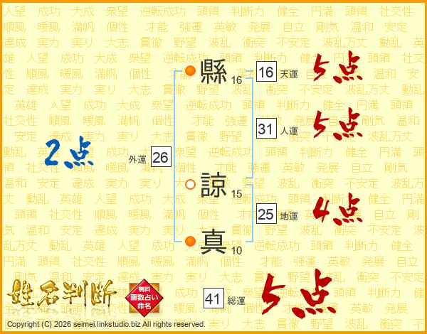 縣諒真さんの総運は41画の5点!