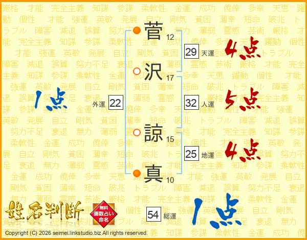 菅沢諒真さんの天運は29画の4点!