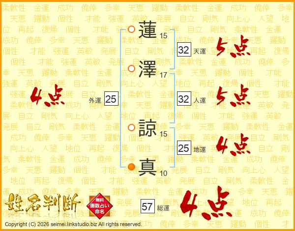 蓮澤諒真さんの地運は25画の4点!