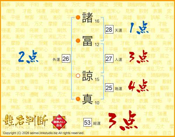 諸冨諒真さんの総運は53画の3点!