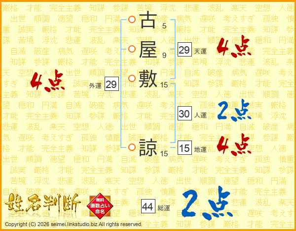 古屋敷諒さんの総運は44画の2点!