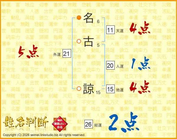 名古諒さんの総運は26画の2点!