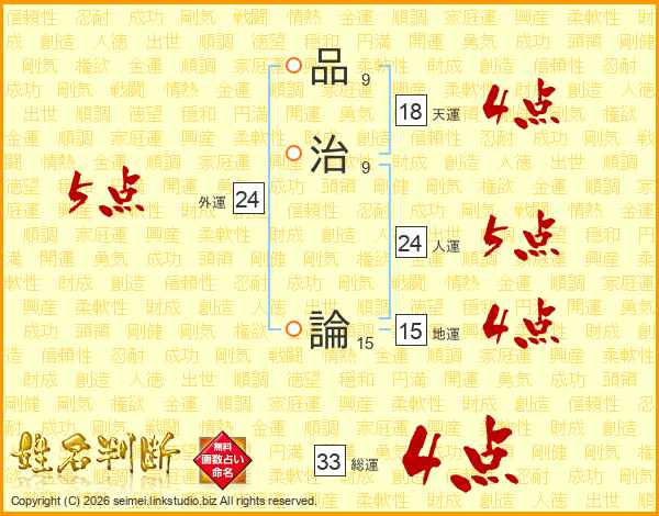 品治論さんの総運は33画の4点!