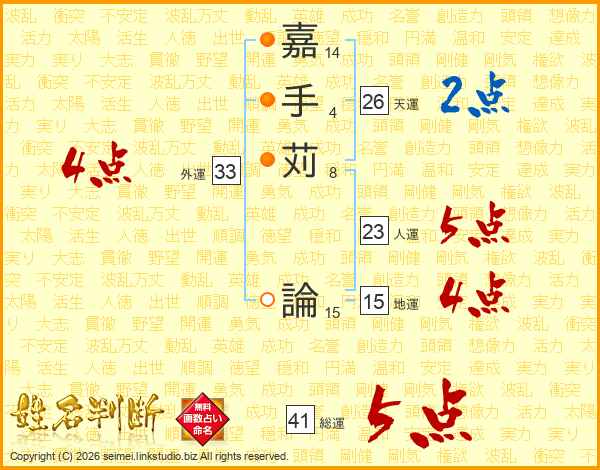 嘉手苅論さんの天運は26画の2点!
