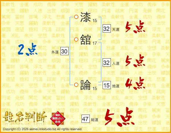 漆舘論さんの総運は47画の5点!