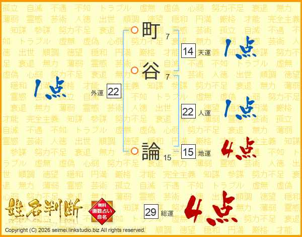 町谷論さんの総運は29画の4点!