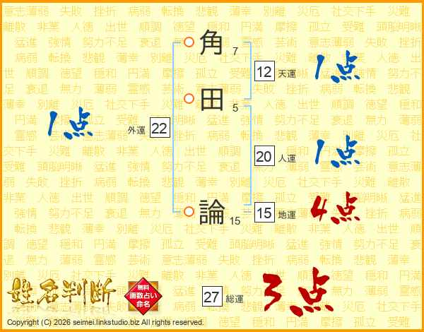 角田論さんの総運は27画の3点!