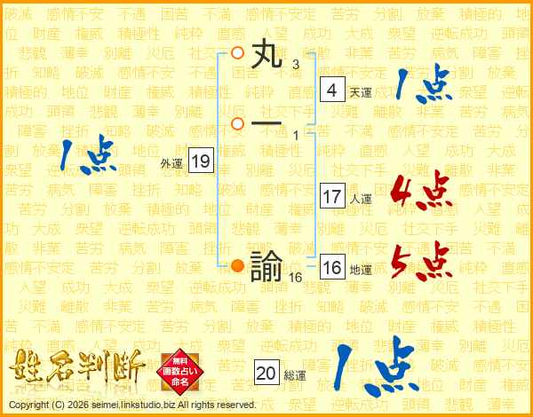 丸一諭さんの総運は20画の1点!