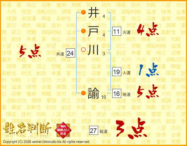 井戸川諭さんの総運は27画の3点!