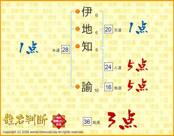 伊地知諭さんの総運は36画の3点!