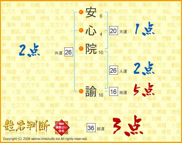 安心院諭さんの総運は36画の3点!