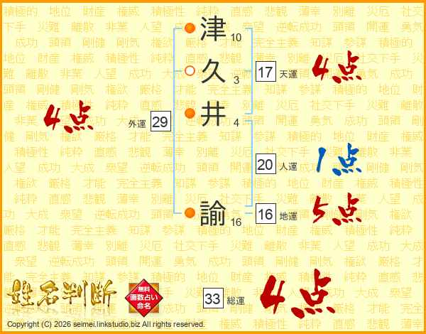 津久井諭さんの総運は33画の4点!
