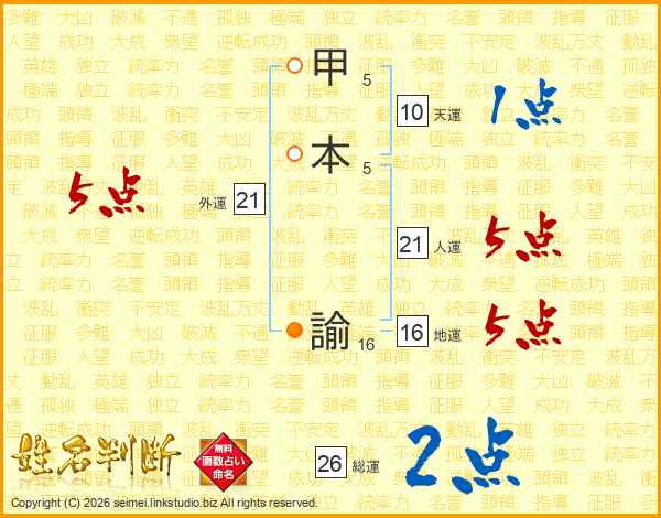 甲本諭さんの総運は26画の2点!
