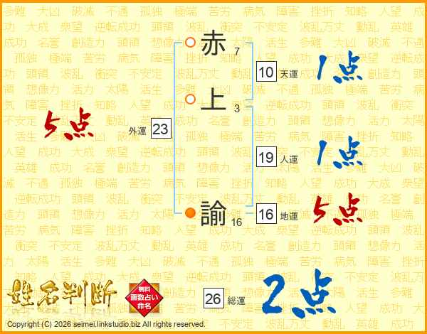 赤上諭さんの総運は26画の2点!