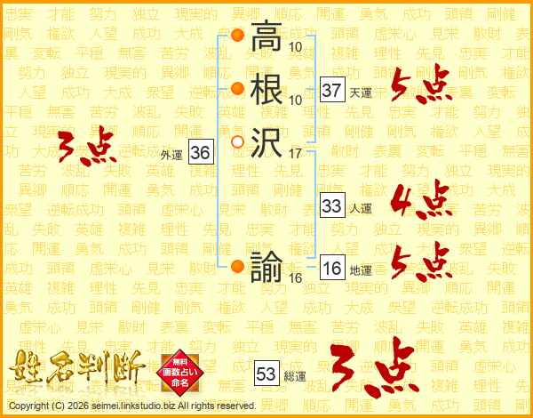 高根沢諭さんの人運は33画の4点!