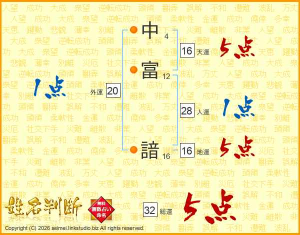 中富諳さんの総運は32画の5点!