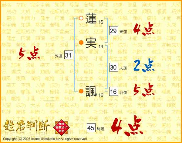 蓮実諷さんの総運は45画の4点!
