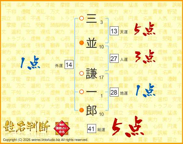 三並謙一郎さんの天運は13画の5点!