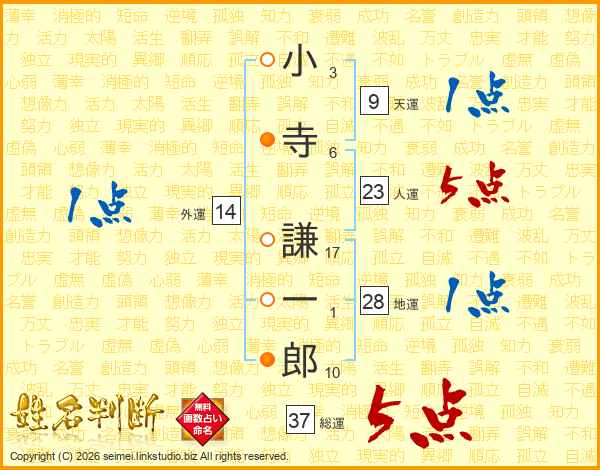 小寺謙一郎さんの総運は37画の5点!