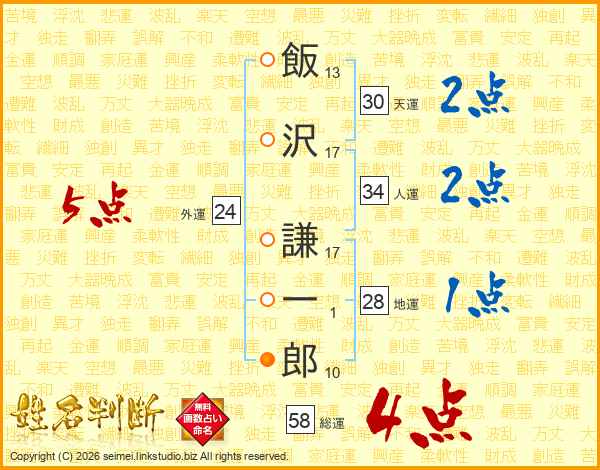飯沢謙一郎さんの総運は58画の4点!
