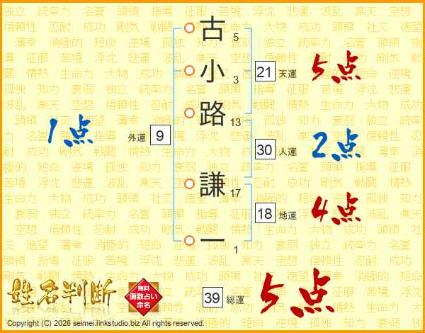 古小路謙一さんの総運は39画の5点!