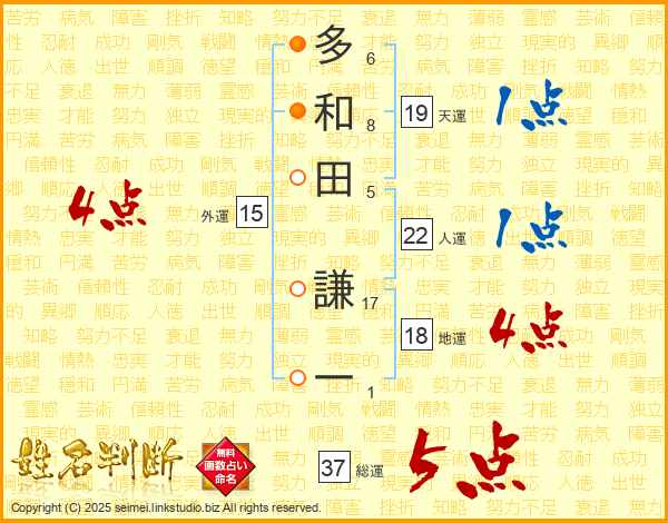 多(6画)和(8画)田(5画) 謙(17画)一(1画)