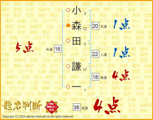 小森田謙一さんの総運は38画の4点!