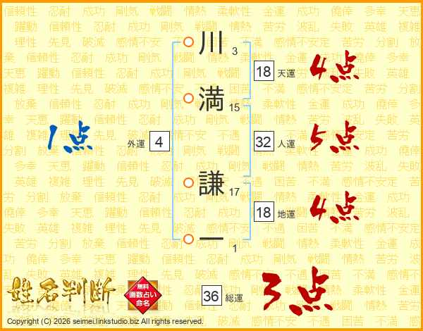 川満謙一さんの総運は36画の3点!