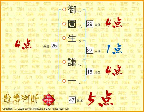 御園生謙一さんの総運は47画の5点!