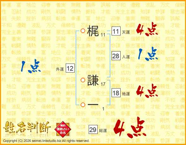 梶謙一さんの総運は29画の4点!