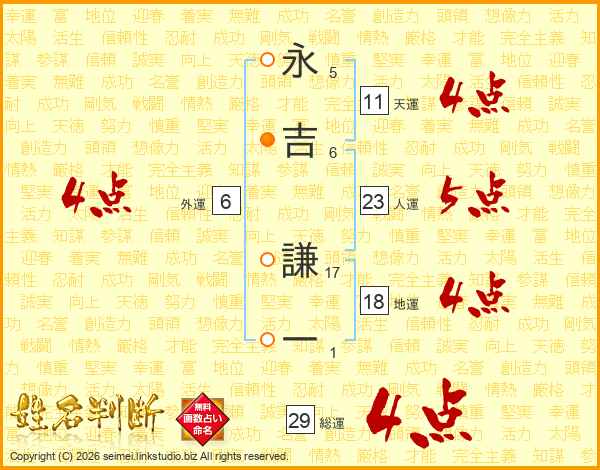 永吉謙一さんの総運は29画の4点!