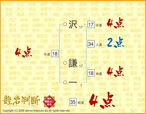 沢謙一さんの総運は35画の4点!