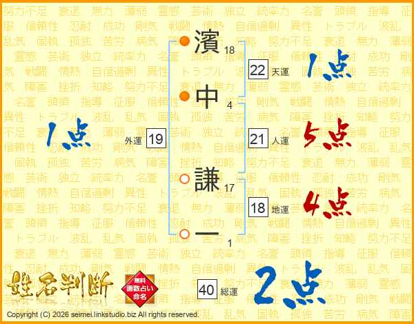 濱中謙一さんの天運は22画の1点!