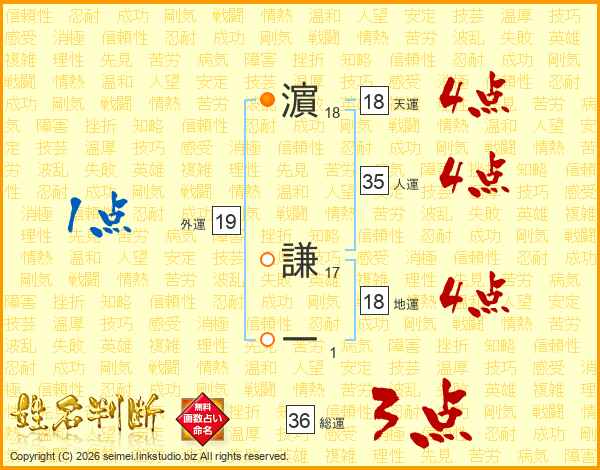 濵謙一さんの総運は36画の3点!