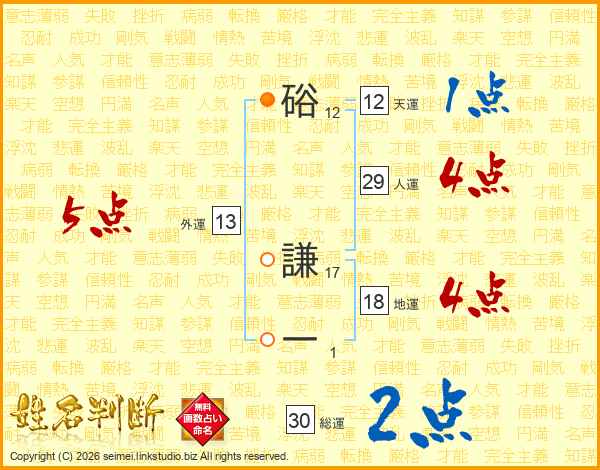 硲謙一さんの人運は29画の4点!