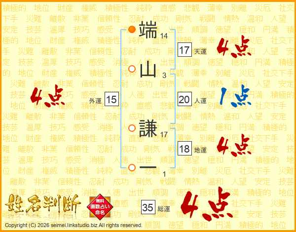 端山謙一さんの総運は35画の4点!