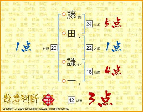藤田謙一さんの天運は24画の5点!