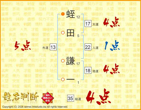蛭田謙一さんの天運は17画の4点!