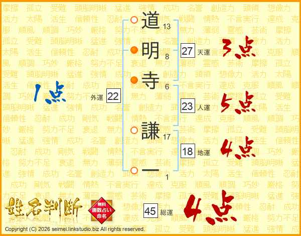 道明寺謙一さんの総運は45画の4点!