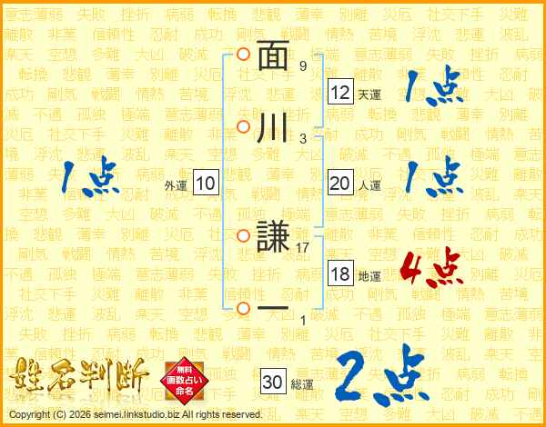 面川謙一さんの総運は30画の2点!
