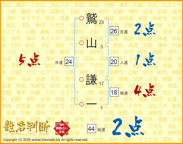 鷲山謙一さんの総運は44画の2点!